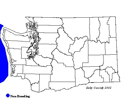 In spite of its larger population, the Laysan Albatross is seen less often off the coast of Washington than is the Black-footed Albatross. The Laysan Albatross is usually found farther offshore, although sightings have increased in recent decades. Younger birds remain south of the adults, closer to Japan. Birds sighted off the Washington coast are more likely to be adults. Laysan Albatrosses are best seen on offshore boat trips. Sightings are occasional, most common from September into early May.