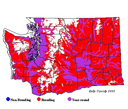 Red-winged Blackbirds are widespread and abundant breeders throughout Washington's lowlands. In winter they are often less widespread, but can be abundant in the Puget Trough, along the Columbia and Snake Rivers, at the Potholes, and at dairy farms along the outer coast. Many birds in Washington are migratory, and others move to lowlands forming large winter flocks.